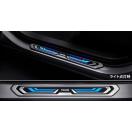 モデリスタロゴが印字され、ドア開閉時に連動してブルーのイルミネーションで乗車する人をもてなしてくれます。